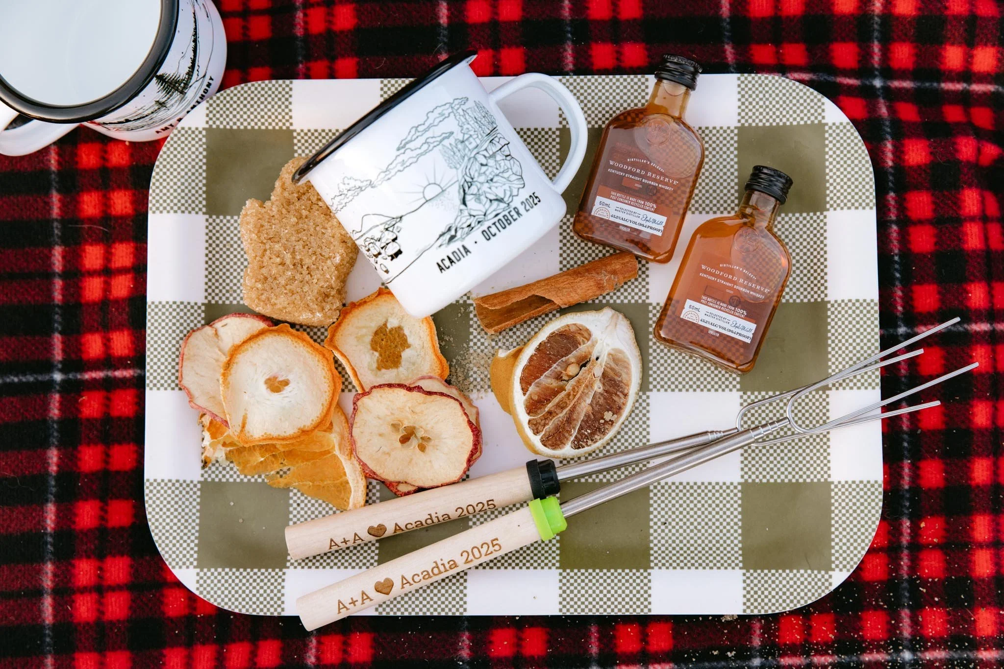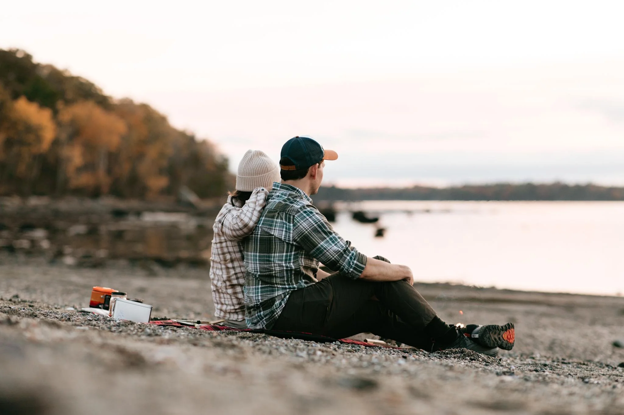 We kayaked back toward shore as the sun dipped lower in the sky, golden hour lighting up the water around us. The final hour of daylight was spent exactly how Amy + Anthony love to spend time together: a Solo Stove fire on the beach, hot toddies in hand, and a good view. It was cozy, quiet, and very much so “them”. The perfect way to end the first day of their adventure elopement in Acadia!