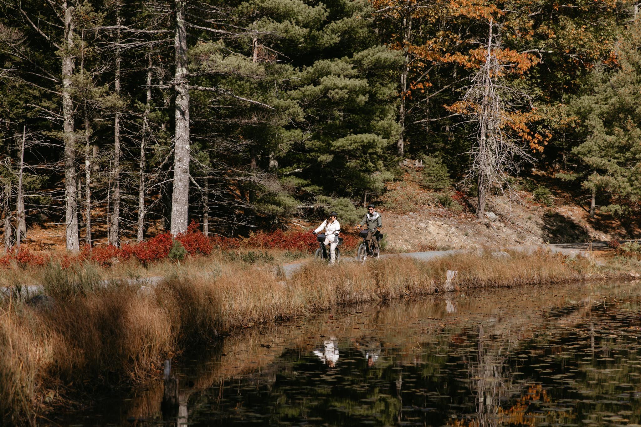 Day one was all about adventure. We kicked things off by renting bikes and cycling the historic carriage roads in Acadia during peak foliage. If you’ve ever been there in the fall, you know how unreal it is! Golds, oranges, and reds wrapping around every turn of the road, reflective ponds, and mountain views popping out all around you - it’s magic!